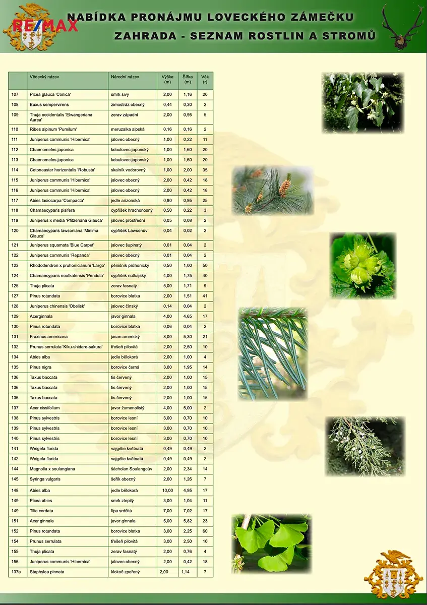 • Rozsáhlý pozemek – Zastavěná plocha a nádvoří 1 342 m², zahrada 4 629 m² s odvodněním drenážemi. Část zahrady tvoří ovocný sad s různými druhy ovoce. Orná půda a ostatní plocha 1 502 m².