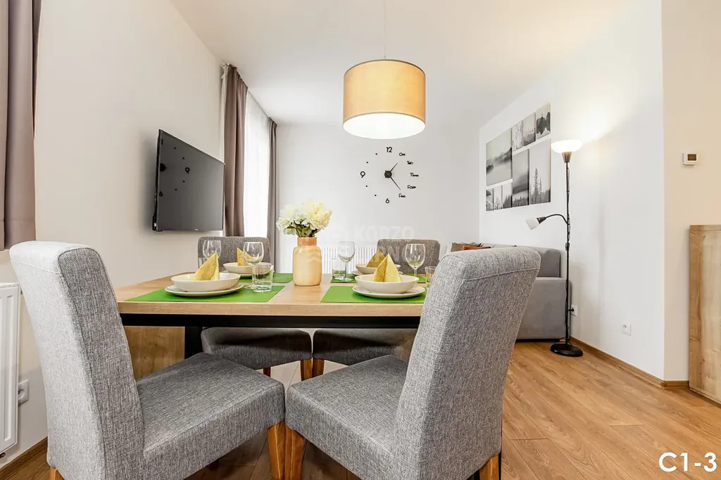 Každý apartmán je standardně vybaven kuchyňskou linkou, osvětlením, routerem, TV, záclonami a závěsy a toto vybavení je zahrnuté vždy v prodejní ceně. Všechny apartmány je možné dovybavit jako vidíte na fotkách (např. matrace, dovybavená kuchyňská linka drobným vybavením, veškerý nábytek, dekorace atd.).