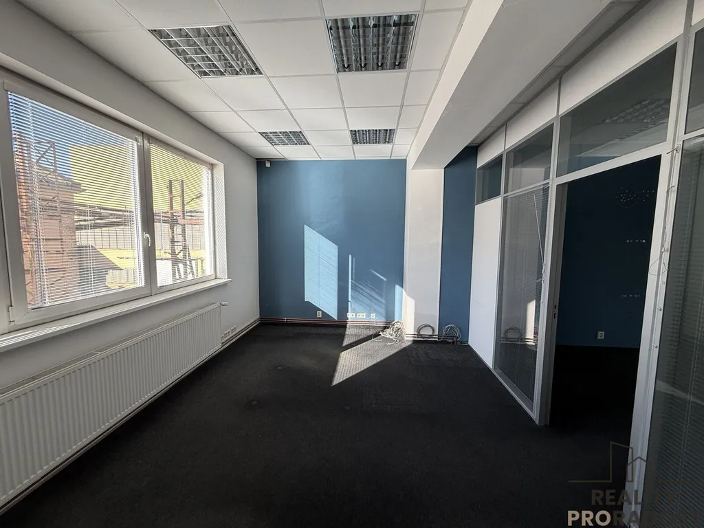 Součástí je i sdílené sociální zařízení a kuchyňka. Vše je ve velmi dobrém stavu, kanceláře dostatečně prosvětlené, okna osazena žaluziemi.