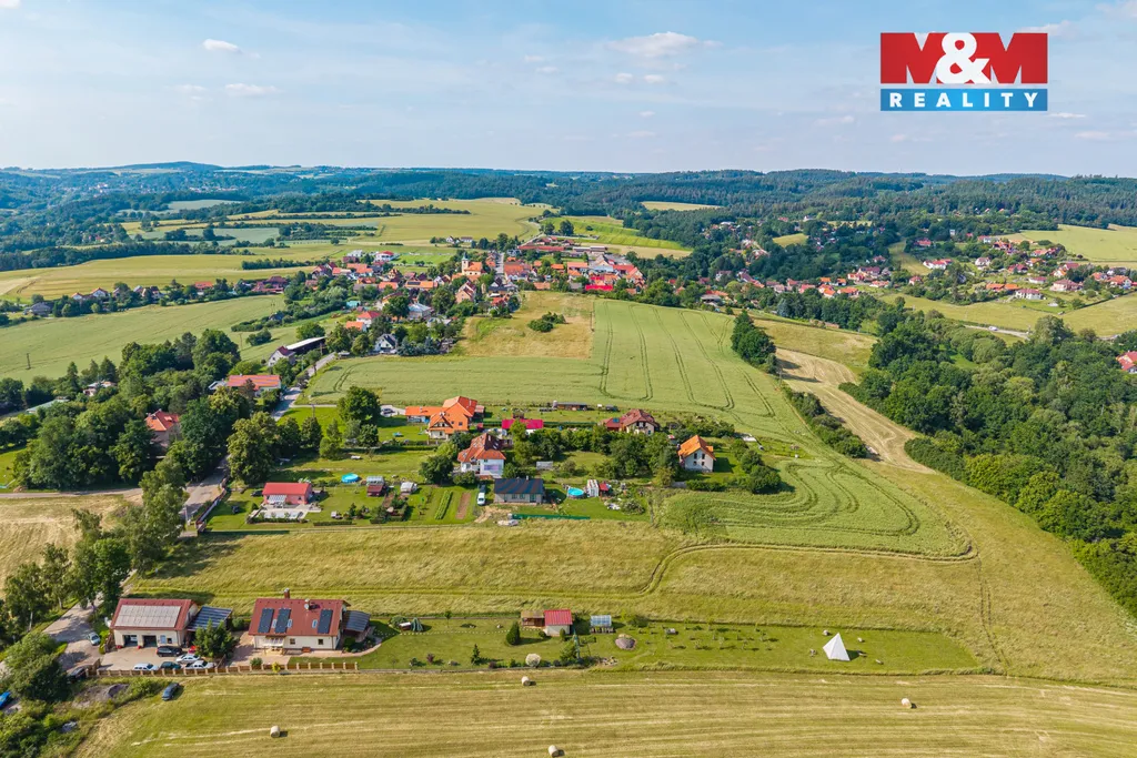 Nabízíme k prodeji atraktivní stavební pozemek o rozloze 3 448 m² na okraji malebné obce Hrusice, spjaté se spisovatelem Josefem Ladou. Lokalita nabízí klidné venkovské bydlení s výbornou dostupností do Prahy – autem asi 25 minut, hromadnou dopravou do 40 minut. Pozemek leží v mírném svahu a poskytuje krásný výhled do krajiny. V územním plánu je veden jako SV – plochy smíšené obytné venkovské, s koeficientem zastavitelnosti 35 %. Na hranici pozemku jsou veškeré inženýrské sítě (elektřina, voda, kanalizace). Díky velikosti nabízí více možností využití – od stavby prostorného rodinného domu s velkou zahradou až po investici v podobě rozdělení na dvě samostatné stavební parcely. Rozdělení má již vydané povolení od stavebního úřadu a schválený geometrický plán. Skvělá příležitost ke koupi pozemku spojujícího klid, přírodu a blízkost Prahy – ideální pro bydlení i investici.