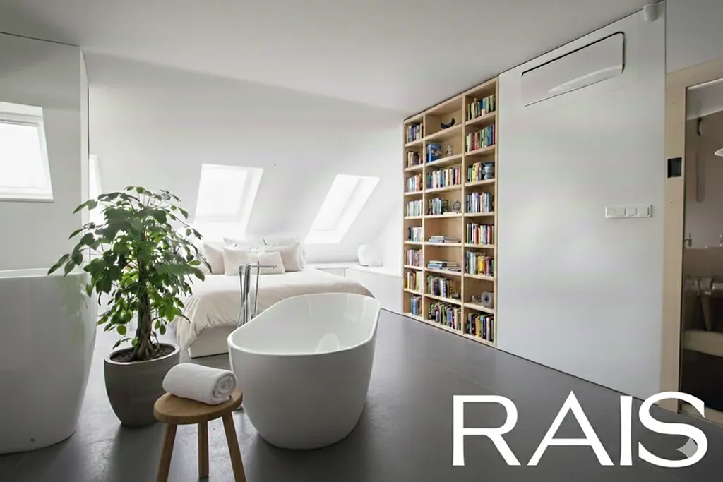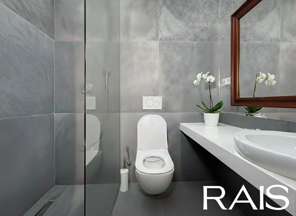 Interiér bytu je řešen s důrazem na funkčnost, eleganci a nadčasový design. Dispozice zahrnuje dvě samostatné toalety, dva sprchové kouty a volně stojící vanu umístěnou v prostoru, která vytváří luxusní atmosféru připomínající wellness. Koupelna je vybavena moderním napínaným stropem Barisol, jenž zajišťuje rovnoměrné rozptýlení světla, dokonale hladký povrch a vysokou odolnost vůči vlhkosti.