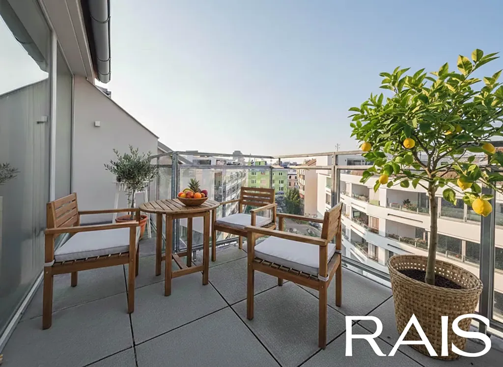 Celková plocha bytu činí 148,2 m², z toho 132,2 m² připadá na obytnou část a dvě prostorné terasy. První terasa nabízí jedinečný romantický výhled na dominantu města – hrad Špilberk, druhá je orientována do ulice Kopečná a poskytuje příjemné místo k posezení a relaxaci.