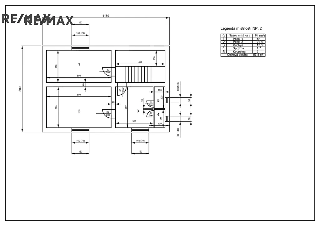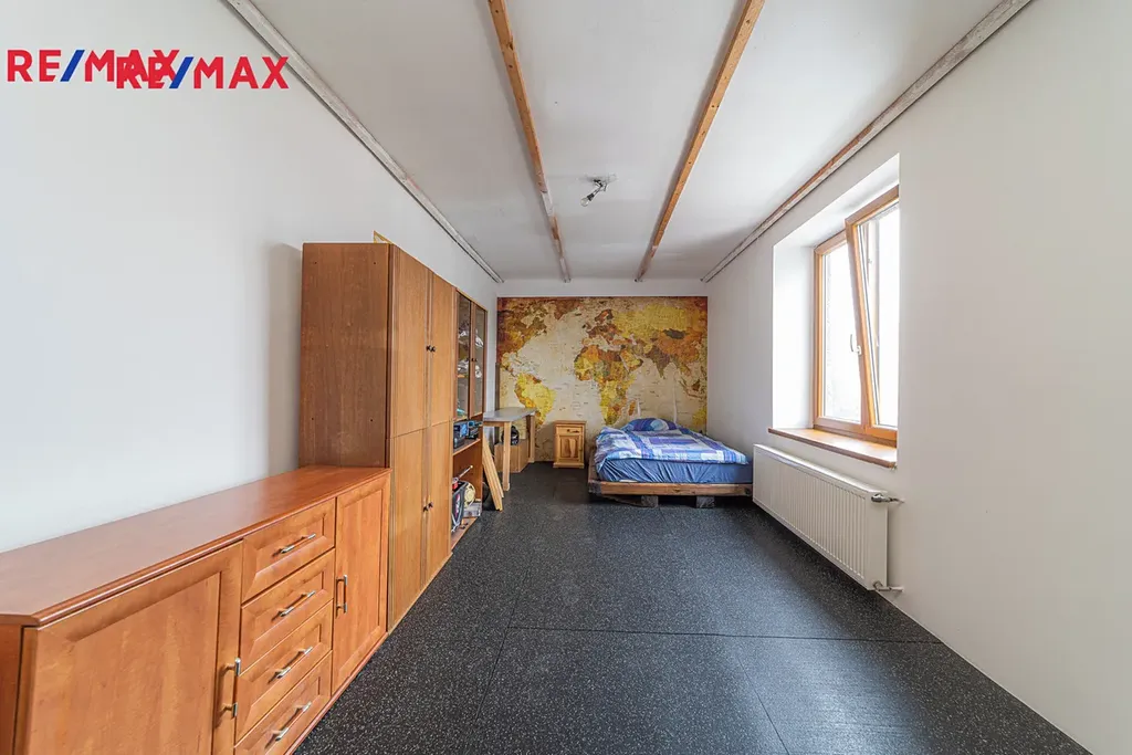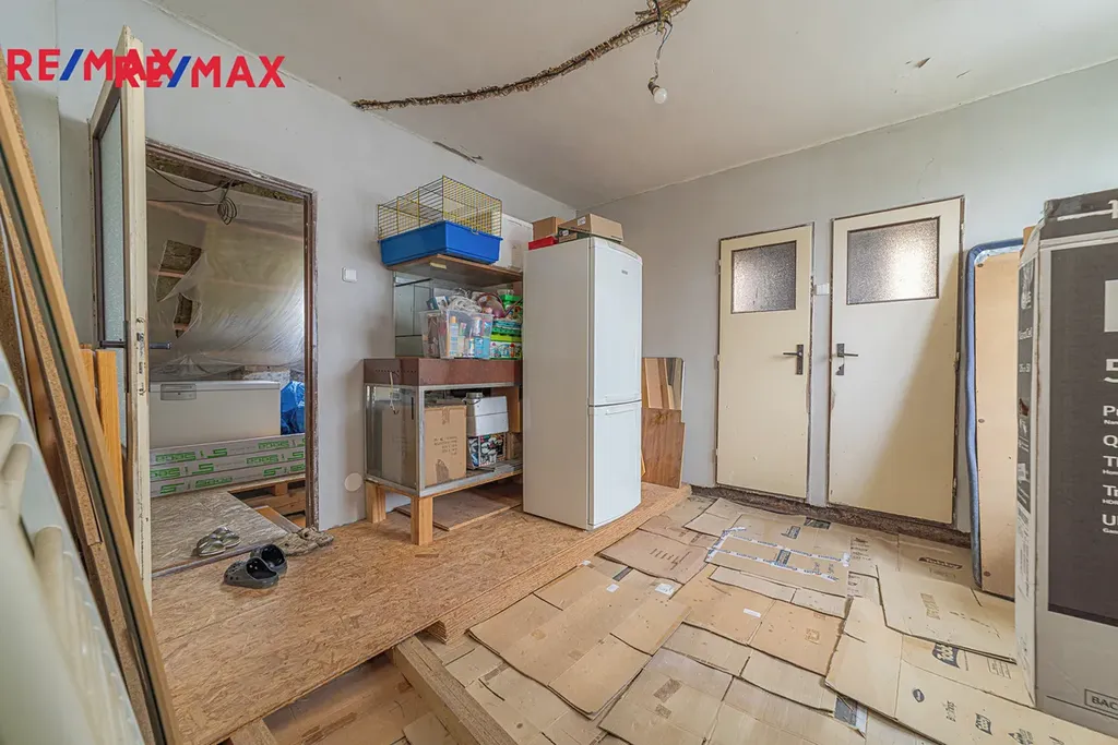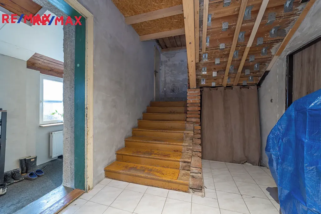 Ve druhém patře je započatá rekonstrukce, která nabízí možnost vybudování samostatné bytové jednotky s dispozicí pokojů 2+1 nebo 3kk.