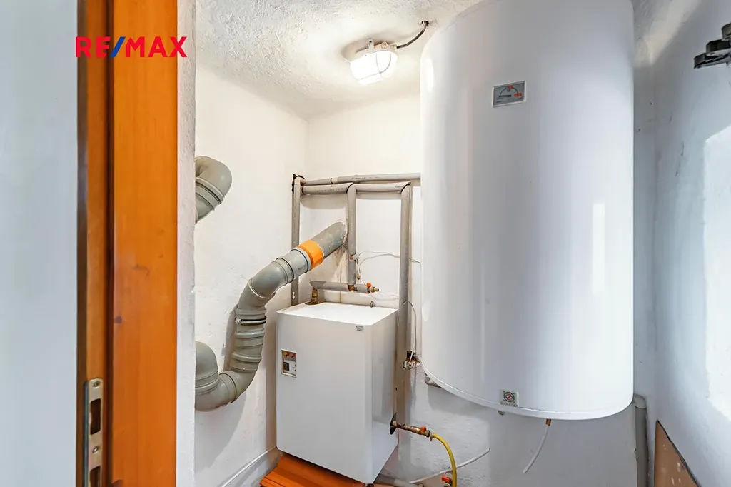 Vytápění je zajištěno elektrokotlem a ohřev vody je zajištěný elektrickým bojlerem v technické místnosti naproti sklepní kóji (tj. před vstupem do bytu). Rozvody elektřiny a topení v bytě jsou v mědi, odpady a voda jsou vedeny v plastu.