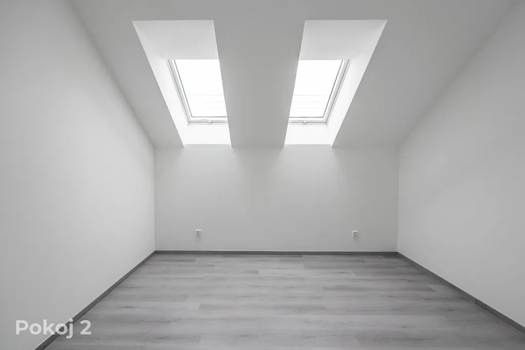 Horní podlaží o ploše 41,44 m² je vyhrazeno klidové zóně bytu. Nachází se zde ložnice, druhý pokoj vhodný jako dětský pokoj nebo pracovna, koupelna s WC a chodba. Tato část bytu nabízí dostatek soukromí a klidu pro odpočinek.