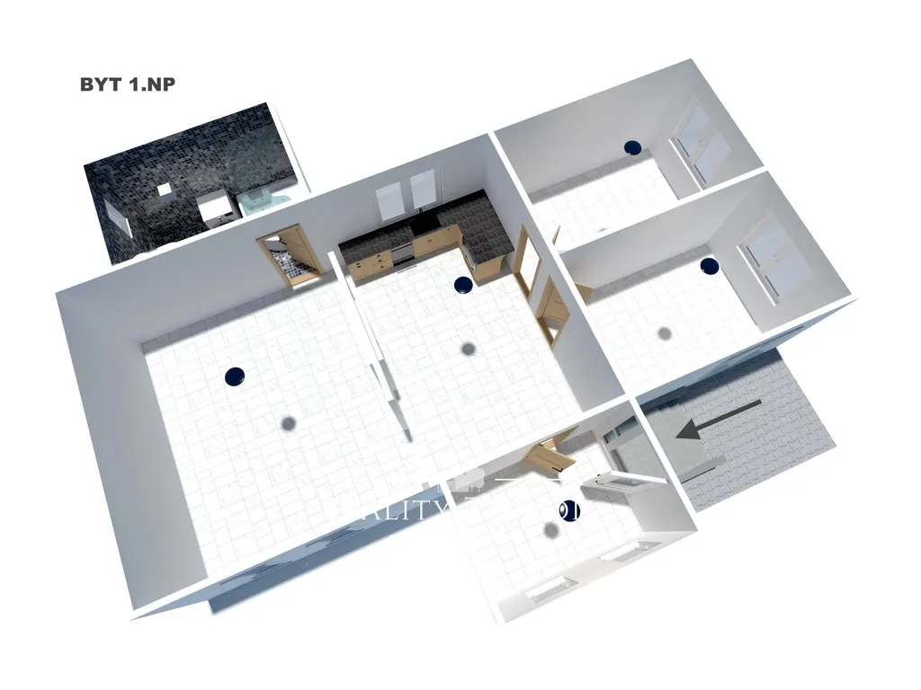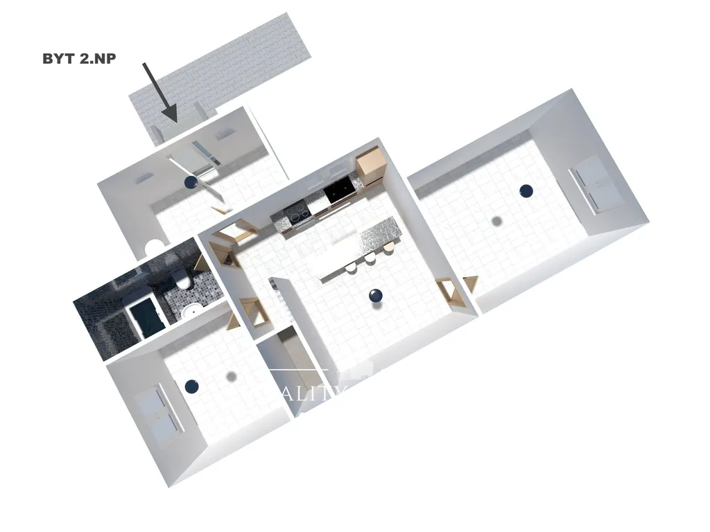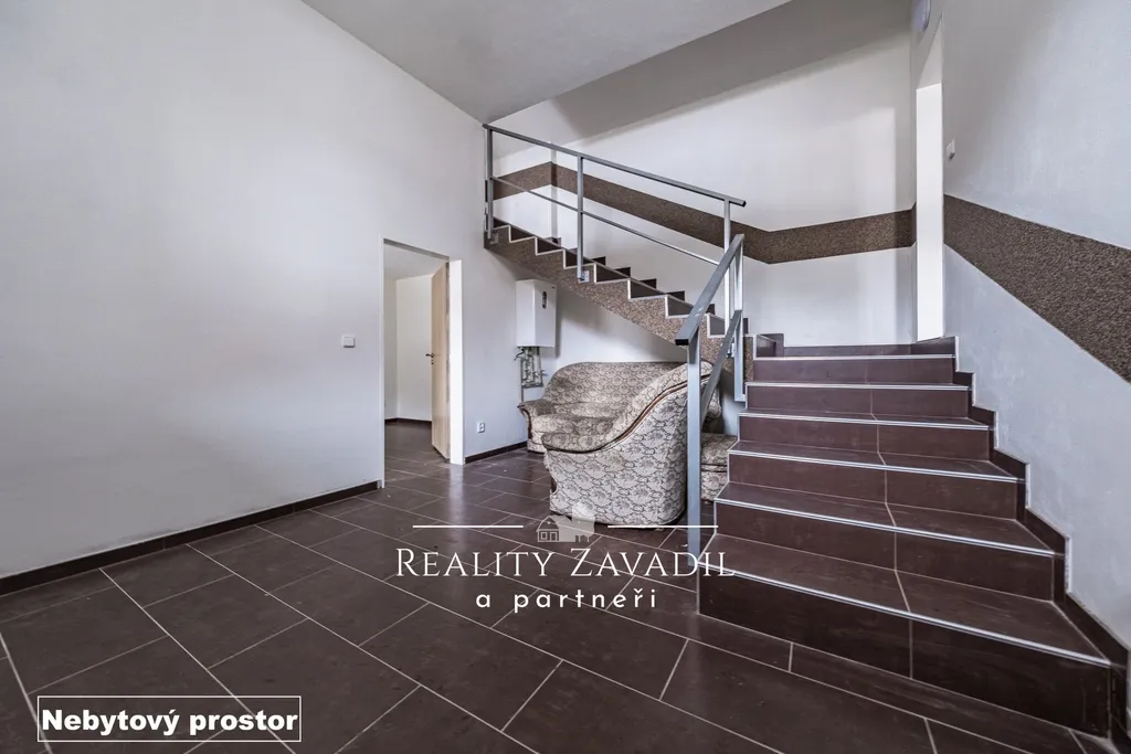 Na pozemku se dále nachází samostatný nebytový objekt o ploše cca 80 m², o dispozici 3+kk. Prostor je atypický, víceúrovňový a nabízí široké možnosti využití – podnikání, ateliér, dílna, kancelář či další investiční záměr.