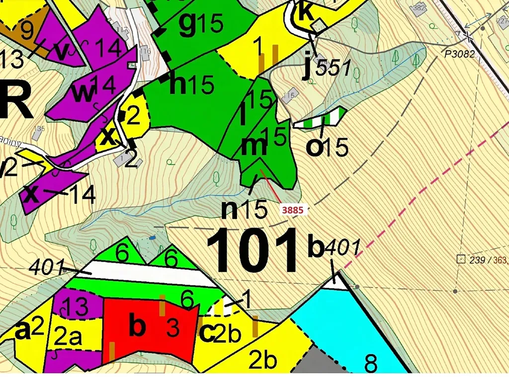 Lesní pozemek o výměře 561 m2, parcelní číslo 3885, podíl 1/1, katastrální území Semily, obec Semily, obec s rozšířenou působností Semily, okres Semily, Liberecký kraj. Po těžbě.