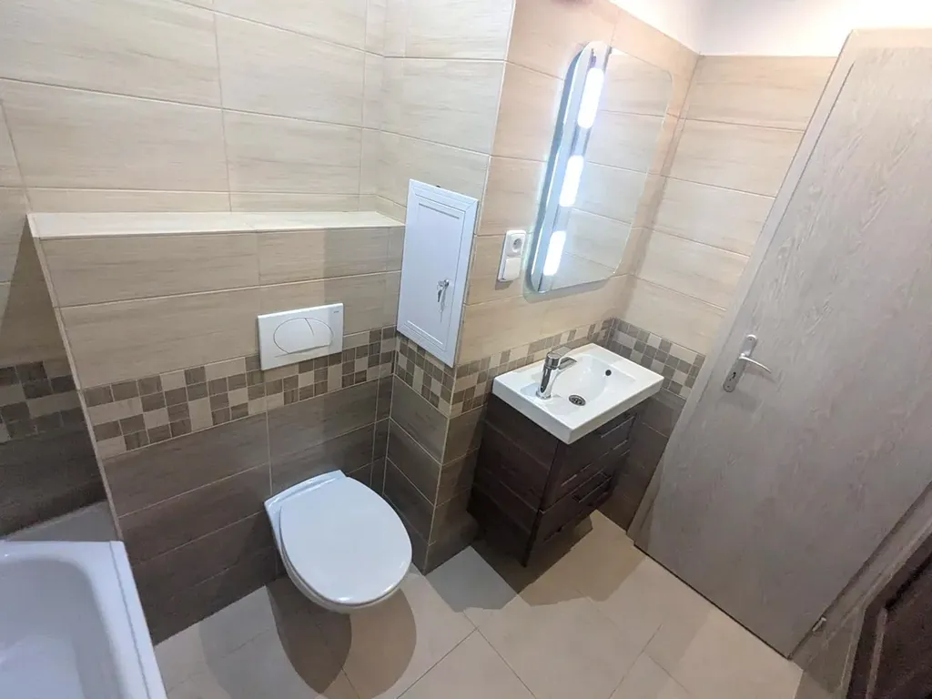 Nabízíme k pronájmu prostorný světlý byt o dispozici 2+1 a výměře 58 m2 v 2.patře s výtahem na adrese Opletalova 472 v Ústí nad Labem. V kuchyni je vkusná kuchyňská linka s elektrickým sporákem. Koupelnové jádro je po rekonstrukci. V koupelně je vana, WC a umyvadlo se skříňkou. Pokoje jsou vyklizené a připravené k nastěhování. Součástí bytu je i zděný prostorný kumbál s posuvnými dveřmi. K bytu náleží sklepní kóje.
