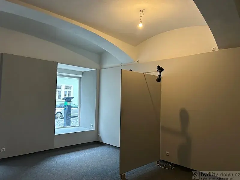Nebytové prostory tvoří hlavní místnost o výměře cca 30 m2 s třemi výkladci do ulice, menší úzká chodbička a za ní zázemí, kde je menší místnost s využitím jako kancelář, malá kuchyňská linka, umyvadlo s průtokovým ohřívačem a WC. Dohromady cca 20 m2. Okno je orientováno směrem na údolní nádrž Jordán. Na podlahách je položený zátěžový koberec, vytápění třemi zánovními akumulačními kamny, možnost internetového připojení. Stropní osvětlení si investuje nájemce ve své režii podle svých potřeb podle charakteru činnosti.
