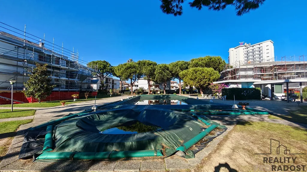 Byt disponuje balkonem orientovaným přímo směrem k bazénu, což vytváří jedinečnou atmosféru letního resortu a umožňuje každodenní kontakt s relaxačním zázemím rezidence. Prostor působí vzdušně, světle a velmi příjemně, ideální jak pro rodinné využití, tak pro rekreační pobyty. Skládá se ze dvou ložnic, obývacího pokoje, kuchyně, koupelny a má dva balkony.