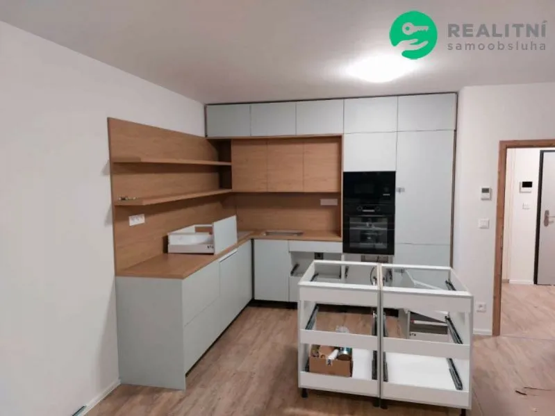 Tento byt bude plně vybavený novou kuchyňskou linkou včetně spotřebičů (sporák, horkovzdušná trouba, mikrovlnná trouba, myčka nádobí), novou předsíní včetně zabudovaných skříní a pračkou se sušičkou.