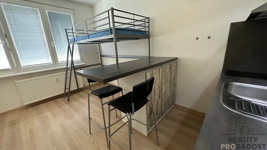 Vkusně zrekonstruovaný byt 1+kk přímo u IGY centra v klidné ulici. Částečně zařízený byt se nachází v šestém patře panelového domu po revitalizaci. Kuch. linka, patro na spaní, koupelna se sprchou, WC. Plovoucí podlaha, ústřední dálkové topení, plastová okna. Měsíční zálohy 2.000,- Kč. Kauce 20.000,- Kč, provize 12.000,- Kč. Volný od 1.3.2026.