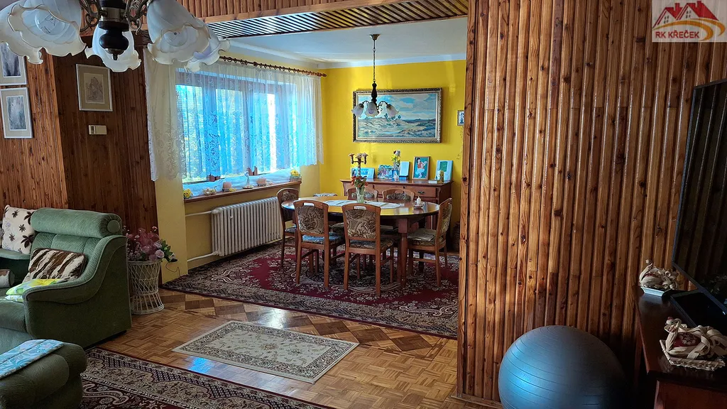 Dům má dispozici 5+kk + pokoj v suterénu. V suterénu domu se tedy nachází garáž, již zmíněný pokoj pro přespání hostů, šatna a špajska, prádelna, koupelna se sprchovým koutem, umyvadlem a WC dohromady, vodárna, která je připojená jak na obecní vodu, tak na studnu. Vytápění domu je novým kondenzačním kotlem. Je zde i vchod do sklepa, který je vhodný i pro vinaře. V přízemí domu se nachází předsíň, velká hala, koupelna s rohovou vanou, 2x umyvadlem a sprchou, samostatné WC, schodištěm do prvního patra a obývací pokoj s kuchyňským koutem se spotřebiči, špajskou, jídelna s oválným stolem, židle, rustikální nábytek, vše z kvalitního dřevěného masívu, obývací pokoj s novou velkou LCD televizí, sedací souprava. Z haly vedou dřevěné schody do 1. patra, kde jsou tři pokoje, z toho jeden pokoj je průchozí, vstupy na balkony (dům má 2 prostorné balkonu), WC. Dům má tepelnou izolaci v omítce s přísadou koloidního stříbra.