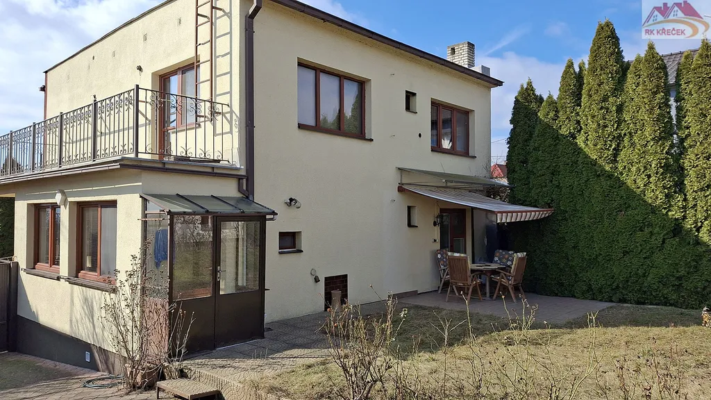 Ve vnitrobloku u domu posezení z masívu, venkovní elektrická markýza a prostorný dvůr s vjezdem a průjezdem přes další zastřešený vjezd (přístavbu) až na zahradu a pole.