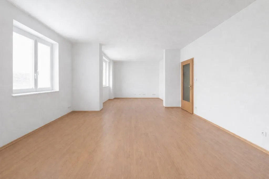 Byt je v inzerci prezentován jako prázdný a doplněný o vizualizace, které slouží pouze pro lepší představu možného zařízení a využití prostoru.
