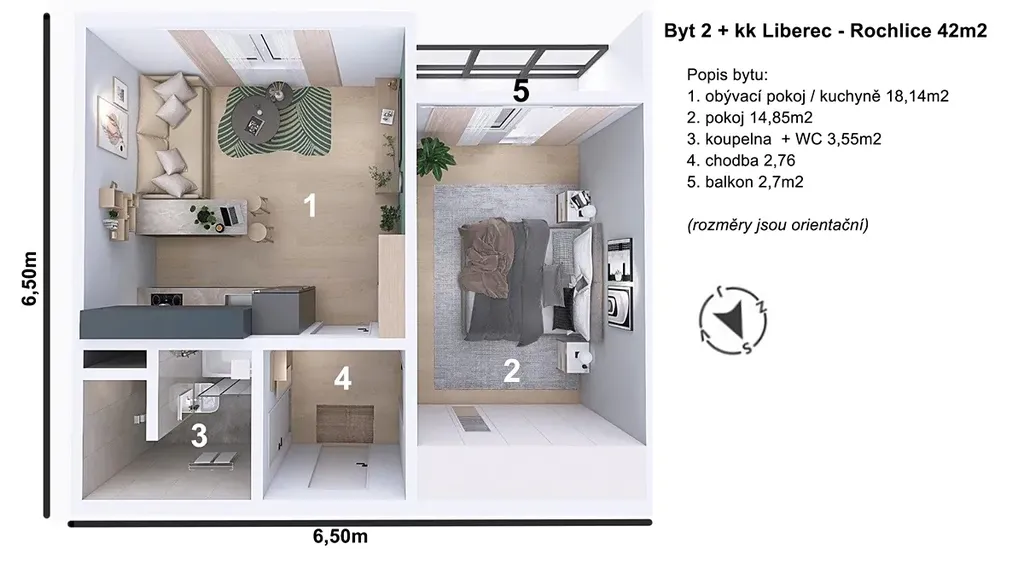 Pěkný byt 2+kk 42 m2 s balkonem, ul. Dobiášova, Liberec.