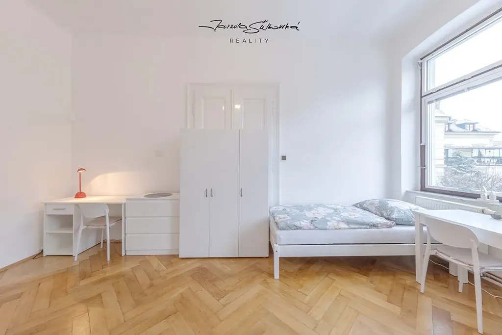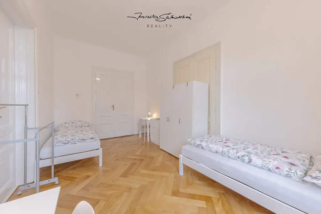 Byt k pronájmu v II. nadzemním podlaží prošel citlivou rekonstrukcí, která respektuje původní ducha domu — žádná sterilní novostavba, ale prostor s příběhem. Velkorysých 108 m² nabízí tři neprůchozí pokoje, stylovou koupelnu se sprchovým koutem a dostatek prostoru pro osobní věci. Kuchyně je vybavena novou, nadčasovou linkou a lednicí — ideální pro společné večeře, ranní kávu nebo noční debaty nad skripty. A když potřebuješ ticho a klid? Čeká na tebe útulná studovna, kde se ti bude soustředit úplně jinak než v přeplněné knihovně.