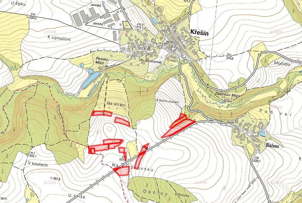 Nabízíme k prodeji zemědělské pozemky nacházející se v katastrálním území Křešín u Pacova, okres Pelhřimov.