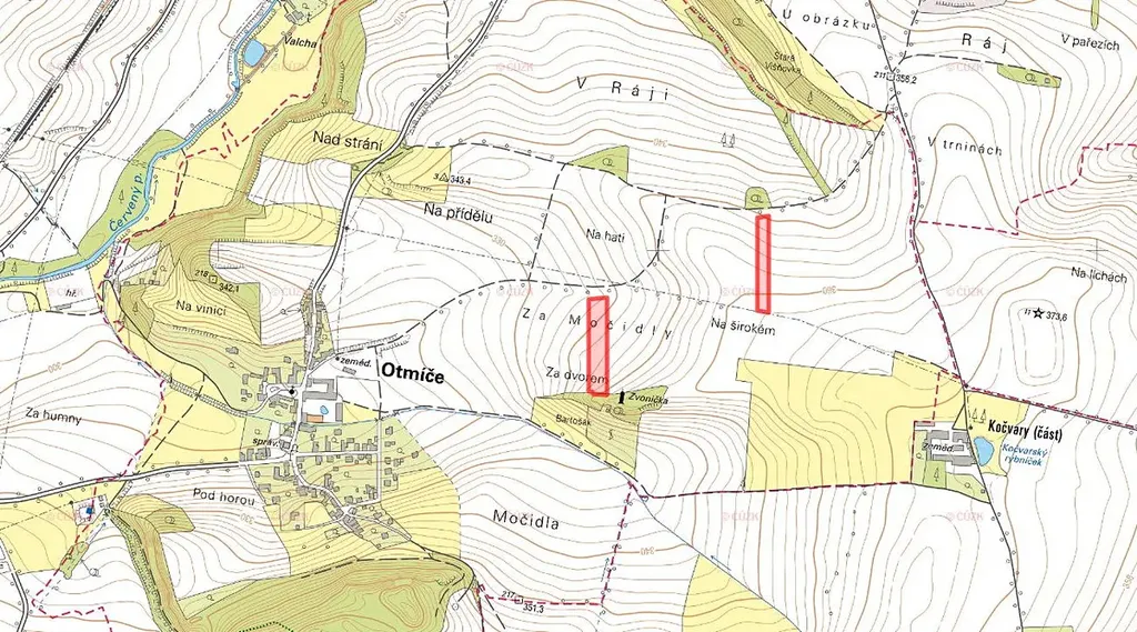 V katastrálním území Otmíče, okres Beroun, nabízíme k prodeji ideální polovinu na dvou parcelách vedených jako orná půda. Pozemky jsou zapsány na listu vlastnictví č. 49 a nachází se v obci Otmíče.
