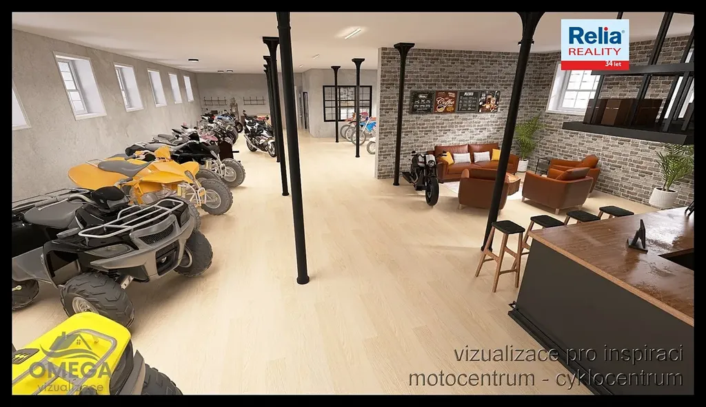 * Prodejna nábytku, moto či cyklo: Velkorysá plocha dvou hal je ideální pro vystavení objemnějšího zboží (sedačky, motorky, kola). Díky nákladnímu výtahu je zboží snadno dostupné v obou patrech.