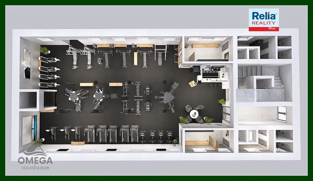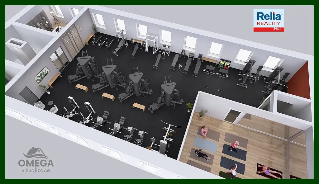 * Fitness a sportovní centrum: Dispozice dvou pater nad sebou umožňuje efektivně oddělit silovou zónu (gym) od sálů pro skupinové lekce, recepece a šaten.