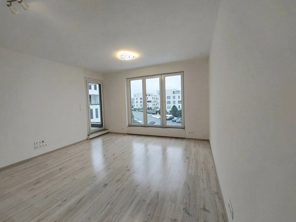 Dispozice: pokoj s kuchyňským koutem 23 m² se vstupem na prostornou lodžii 5 m², samostatný pokoj 12 m² taktéž se vstupem na lodžii, koupelna se sprchovým koutem, společná s WC, s bidetem a přípojkou na pračku, předsíň, k dispozici sklep, kolárna, garážové stání a venkovní stání za závorou.