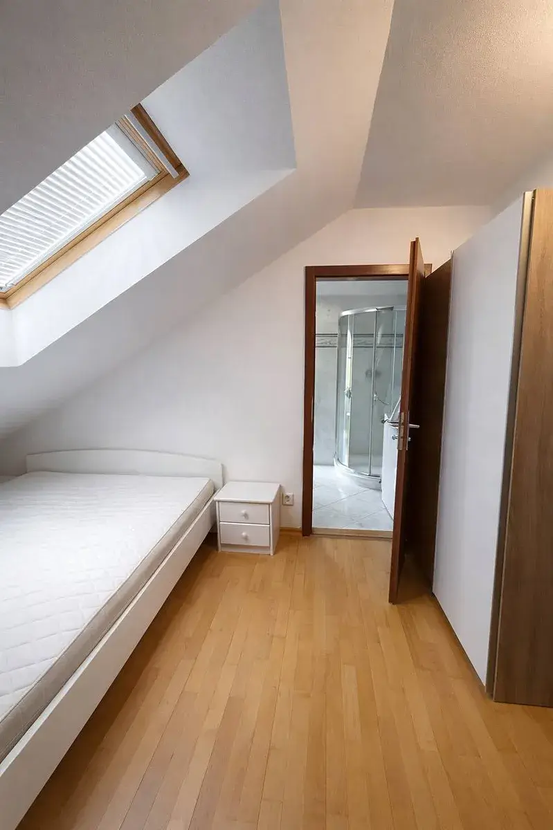 • Částečně zařízený: vestavěná skříň, postel s matrací, dvě samostatně stojící skříně, jídelní stůl a židle