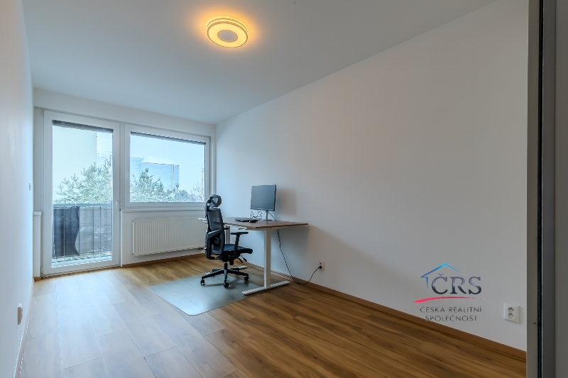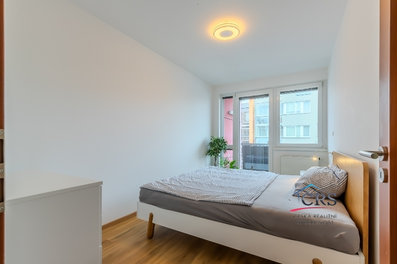 V bytě je prostorný obývací pokoj s kuchyňským koutem, kuchyňská linka s ostrůvkem, vybavená skloker.deska, elektrická trouba, myčka, mikrovlnná trouba, digestoř a lednice. Každý pokoj má vlastní vstup na balkón, neprůchozí pokoje. Koupelna s oknem a sprchovým koutem, WC odděleně. Na podlahách dlažba, marmoleum a plovoucí podlaha. Obložkové zárubně a interiérové dveře, bezpečnostní vchodové dveře.