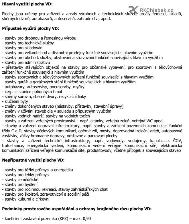 Hlavní využití této plochy je určeno pro: