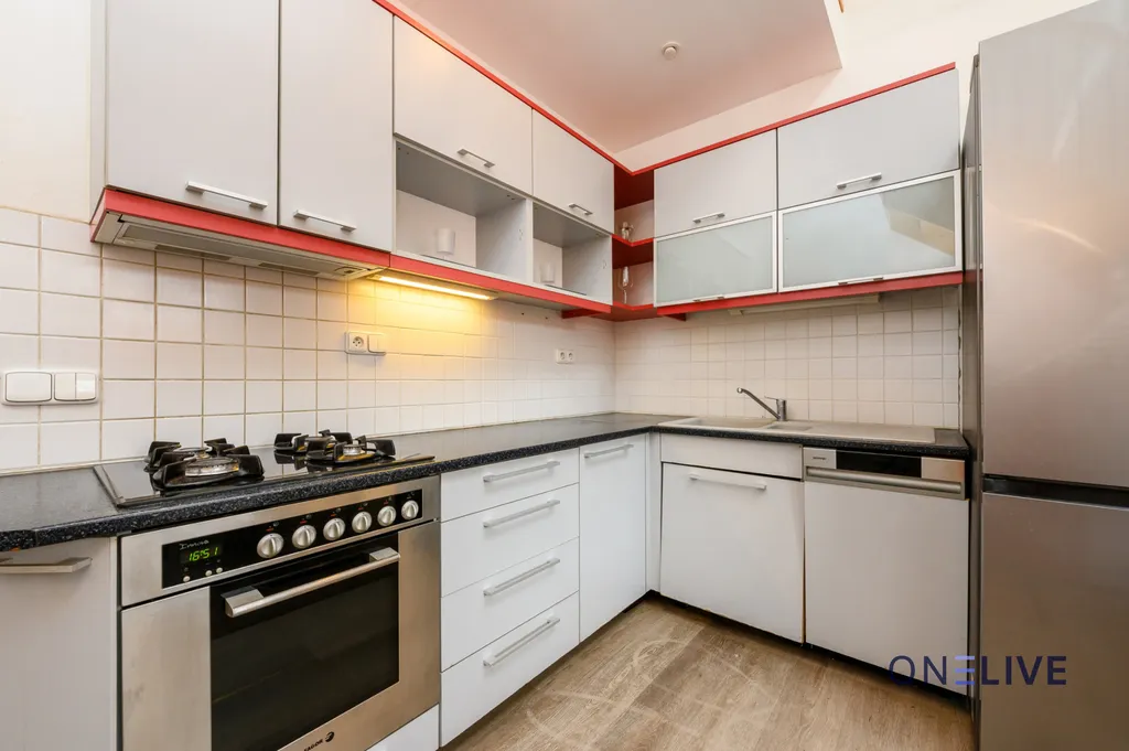 Byt je vybaven klimatizací, což zajišťuje vysoký komfort bydlení po celý rok. Kuchyň nabízí dostatek úložného prostoru i prostornou pracovní plochu a je vybavena plynovým sporákem, myčkou nádobí a lednicí, které budou budoucím nájemníkům k dispozici. Součástí vybavení bytu je také pračka. Byt bude pronajímán částečně vybavený. Vytápění a ohřev vody jsou řešeny vlastním plynovým kotlem.