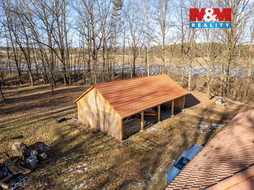 Nemovitost se nachází na rozlehlém pozemku o výměře 6 550 m², který nabízí nepřeberné možnosti – od zahradních úprav, relaxační zóny až po rekreační či komerční využití. Součástí domu je garáž nebo dílna, parkovací stání, venkovní posezení s veškerým vybavením, s vířivkou a také plátno pro promítání filmů, ideální pro letní večery i společenské akce.