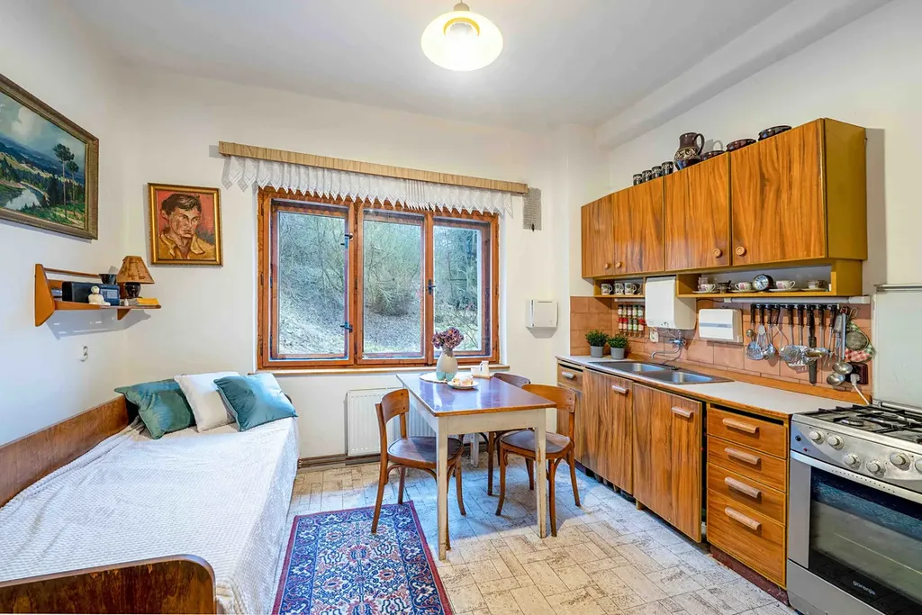 Kuchyně je tak akorát – vejde se sem válenda i stůl, a přitom zůstává dostatek prostoru pro vaření.