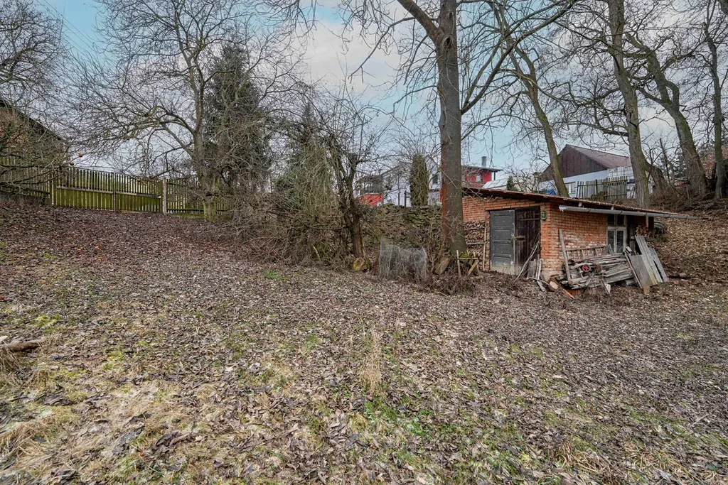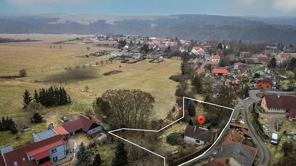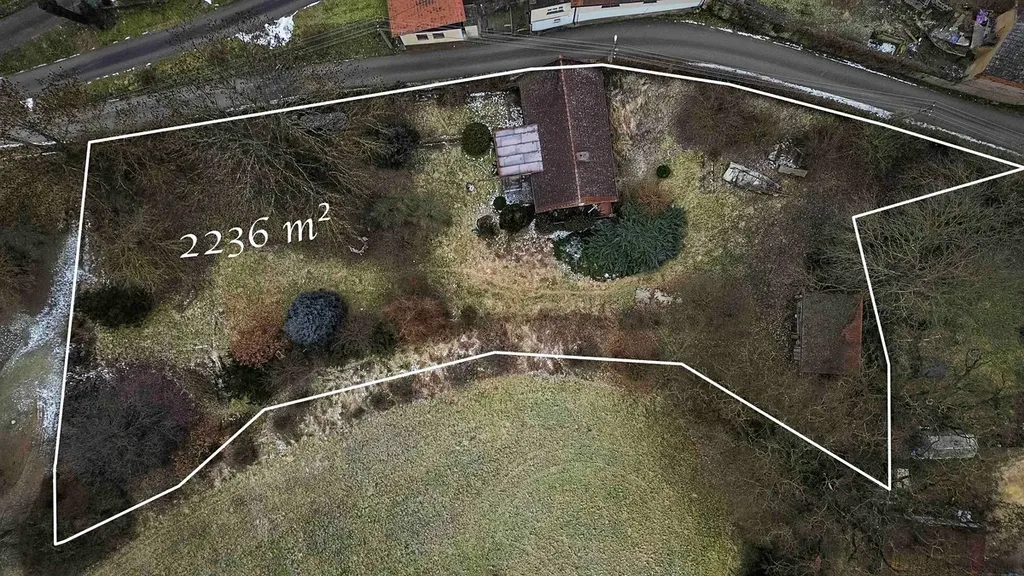 Na pozemku o velikosti 2 330 m² stojí zděná chata se zastavěnou plochou 94 m², umístěná v klidné části obce, bez jakékoli zástavby před domem.