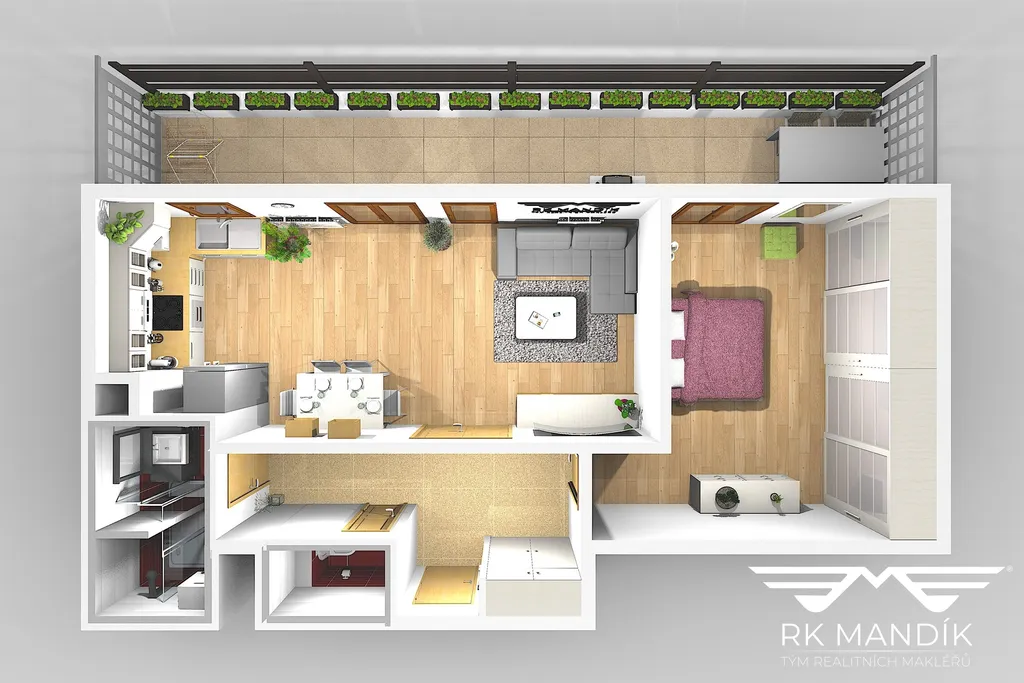 Nabízíme k dlouhodobému pronájmu byt o dispozici 2+kk s terasou, který nabízí komfortní a klidné bydlení v žádané lokalitě s výbornou dostupností do centra města.