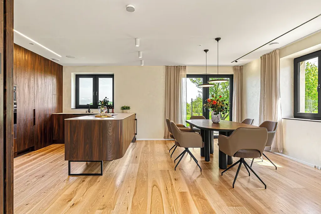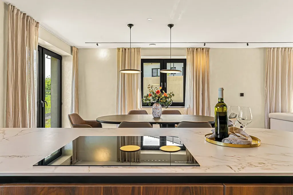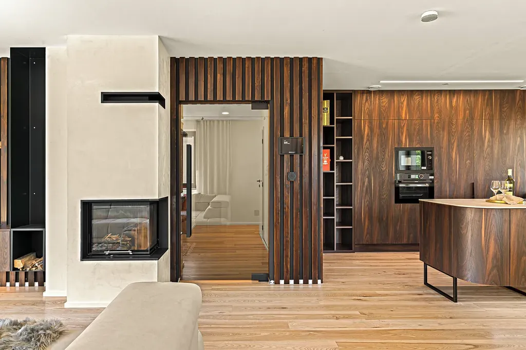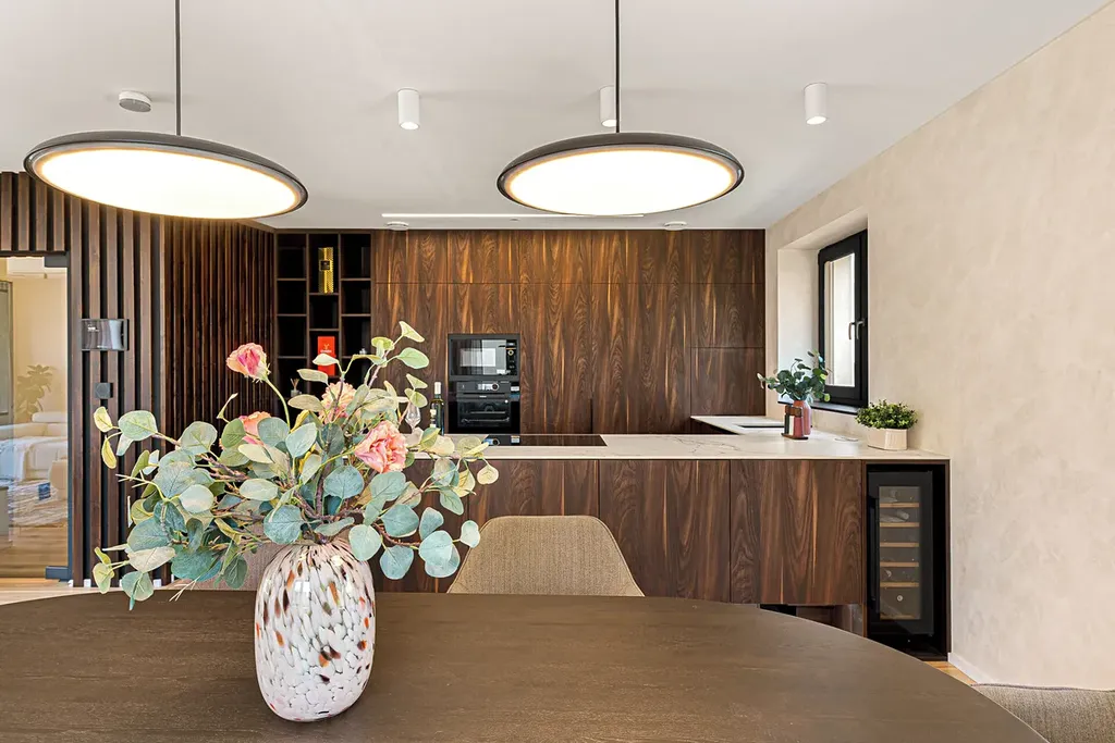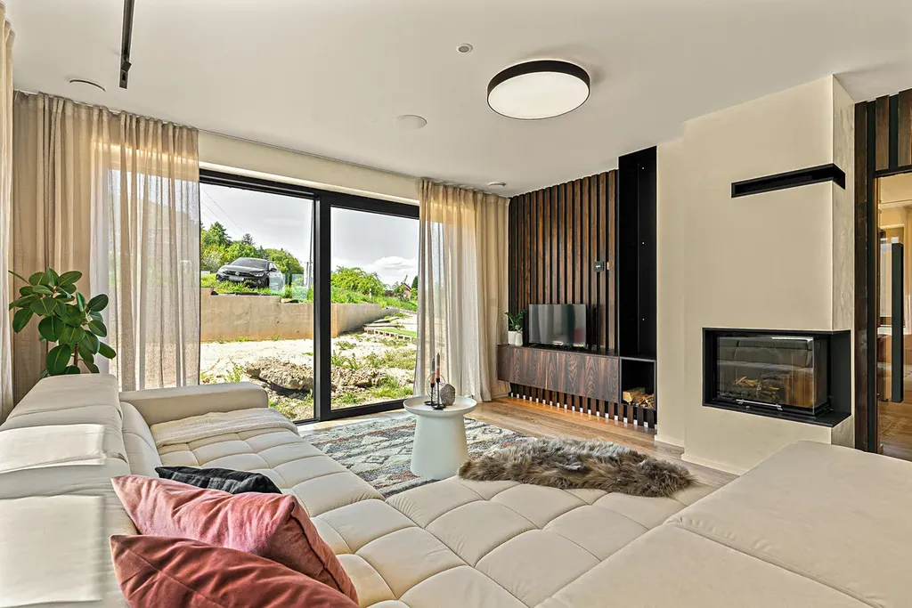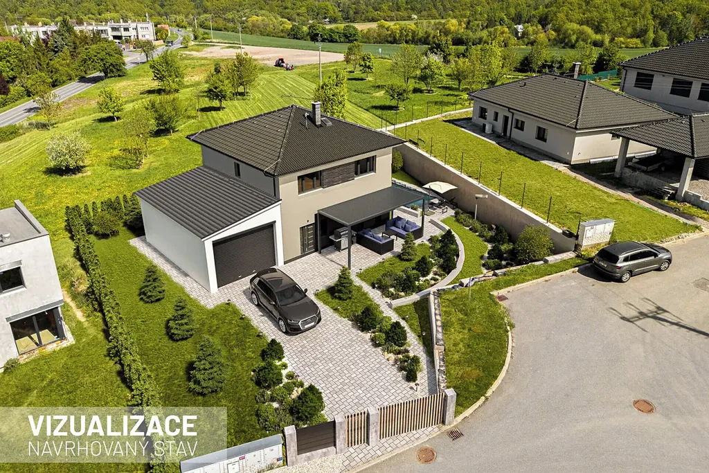 Domácnost dostanete už vybavenou inteligentní technologií Loxone s kompletním osvětlením a audiosystémem. Podlahové topení, krb s řízeným odvětráváním, rekuperace s výměníkem, tepelné čerpadlo Mitsubishi Power Inverter, centrální vysavač Husky Cyklon, desetikubíková retenční nádrž nebo příprava na fotovoltaiku. To vše je součástí kupní ceny.