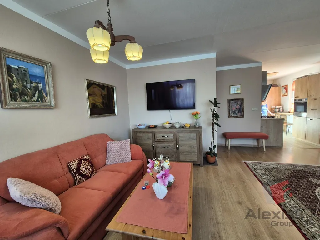 Dominantou bytu je velký obývací pokoj o velikosti 30,6 m2, který nabízí dostatek prostoru pro obývací i jídelní část. Moderní kuchyň s oknem je vybavena plně zařízenou kuchyňskou linkou. V bytě jsou dále dva samostatné neprůchozí pokoje, prostorná předsíň, koupelna a oddělené WC.