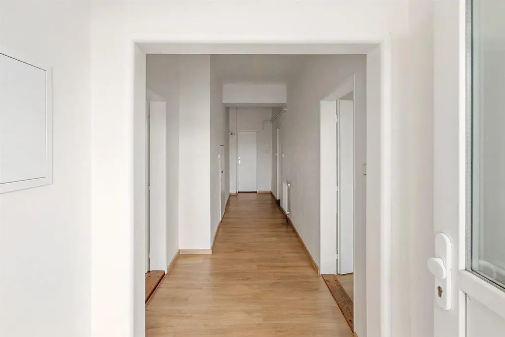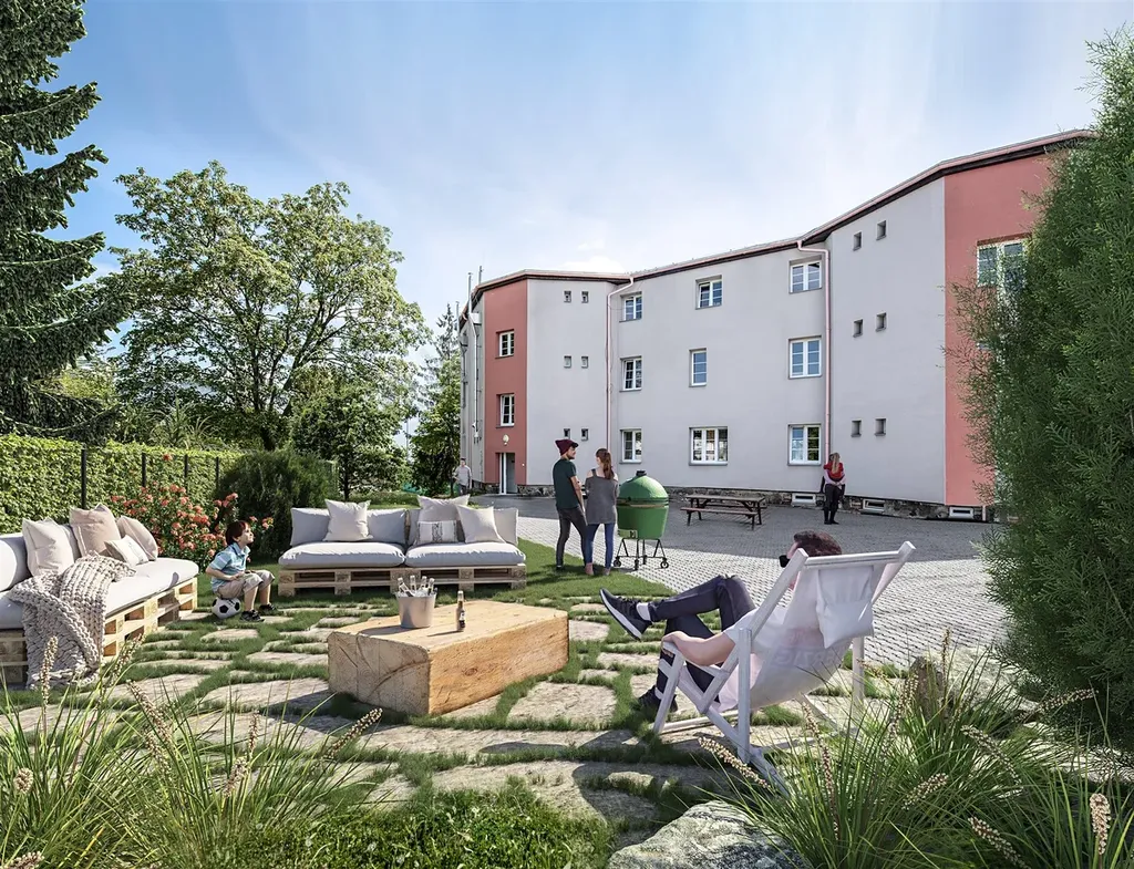 Interiér byl nově upraven tak, aby vytvářel čistý a sjednocený základ pro budoucí zařízení podle vlastních představ. V obytných místnostech byly renovovány parkety, v chodbě a kuchyni je nová vinylová podlaha. Celkový dojem doplňují nové bílé vnitřní dveře ve stejném designu napříč celým bytem. K dispozici je příprava na kuchyň, koupelna a toaleta v původním provedení, což umožňuje další úpravy dle individuálních požadavků. Dům prošel celkovou revitalizací – byly zrekonstruovány hlavní rozvody, upraveny společné prostory a obnovena fasáda. Upravené společné prostory i komunitní zahrada podtrhují pohodový charakter celého projektu.