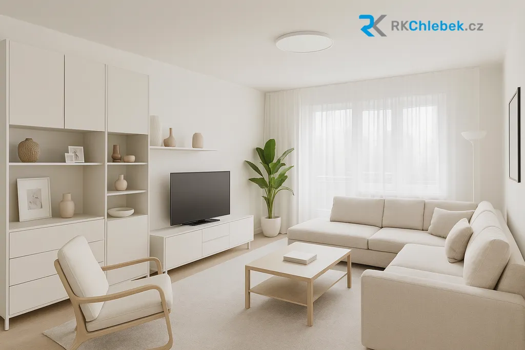 Ačkoli na fotografiích je ještě nábytek , byt bude u předání zcela vyklizen.