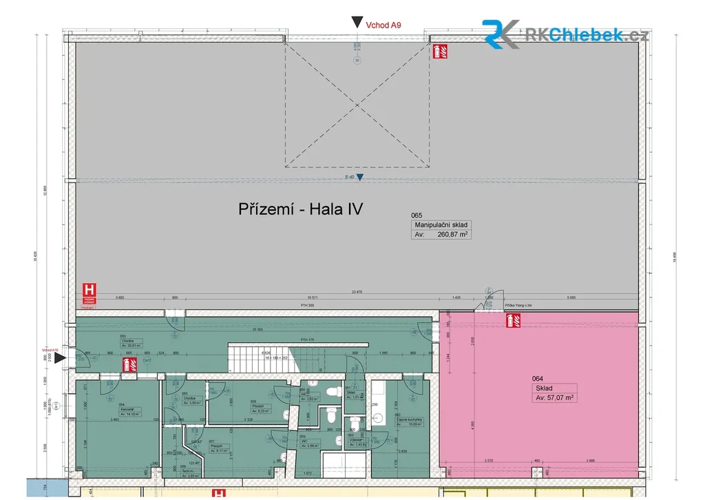 • skladové kóje v hale B (vstup B2) – od 48 m² do 447 m² ² (cena od 120 Kč/ m² měsíčně + 1000 Kč služby)