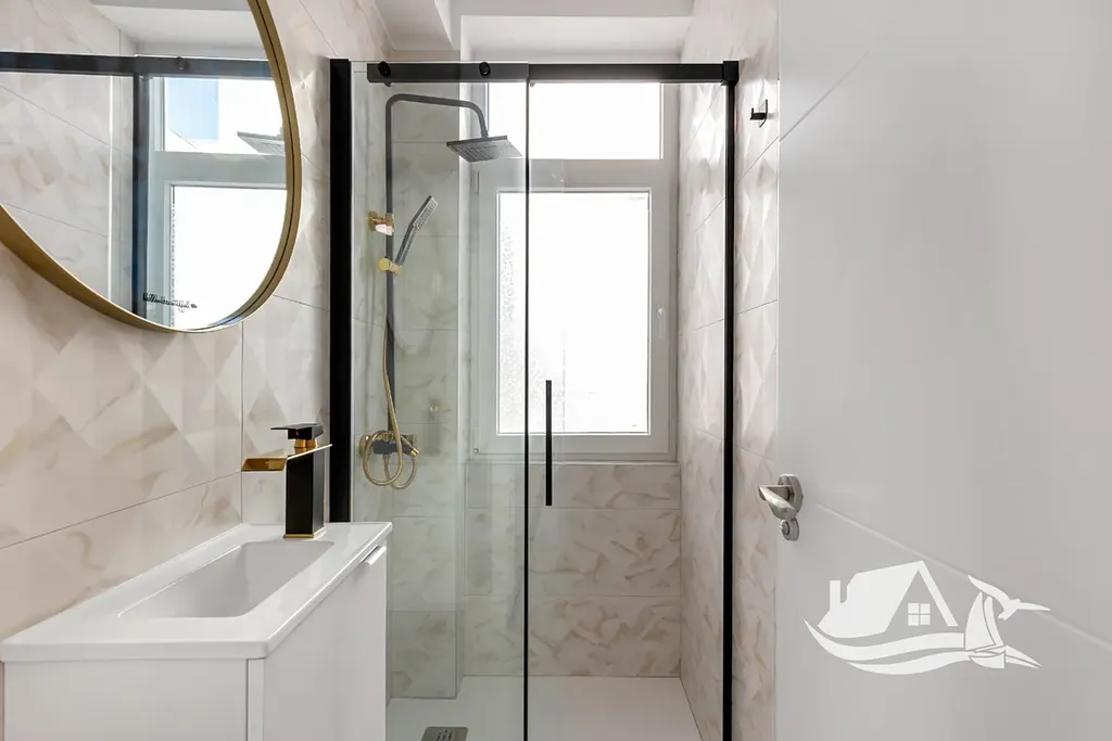 Dispozice apartmánu je praktická a komfortní. Nabízí tři ložnice, jednu koupelnu, samostatné WC pro hosty, velkorysý obývací prostor s jídelnou a otevřenou kuchyní, která přirozeně zapadá do moderního konceptu bydlení. Celková plocha činí 76 m² a nechybí ani terasa o velikosti 5 m² orientovaná na severovýchod, ideální pro klidné ranní posezení s mořským vzduchem.
