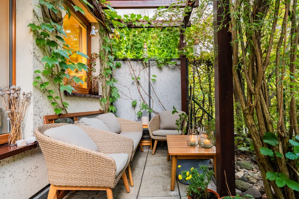Přízemí bytu tvoří obývací pokoj se vstupem na terasu a dále do zahrady. Terasa je zastřešená a zvětšuje tak užitný prostor bytu. Zahrada je rovinatá se vzrostlými dřevinami, které poskytují nejen pocit, že jste součástí přírody, ale poskytují i velmi příjemné klima v přízemní části bytu. Obývací pokoj je prakticky propojený s jídelnou a kuchyňským koutem. Kuchyně je vybavená kuchyňskou linkou se spotřebiči. Dále je zde prostorná ložnice s vestavnými skříněmi. Z ložnice je také umožněn přístup na terasu. Samozřejmostí je koupelna se sprchovým koutem a toaletou. Velmi příjemný je fakt, že ze zahrady vede branka k zadní přístupové cestě, na kterou se dostanete pohodlně autem, což je velmi praktické v rámci zásobování či stěhování.