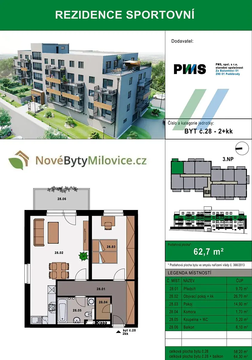 Dovolte mi představit jeden ze 44 krásných bytů v nově vznikajícím projektu Rezidence Sportovní v Milovicích. Výstavba nyní započala a realizuje ji společnost s dlouholetou tradicí a praxí v oboru, firma PMS Poděbrady.