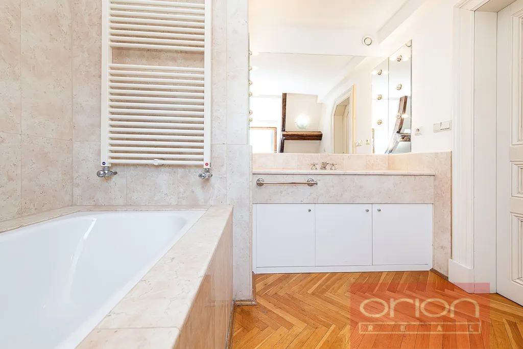 Nabízíme k pronájmu luxusní, částečně zařízený byt 4+1 s velkou terasou (23m² ) s krásným výhledem na Prahu v 5. patře secesního domu s výtahem, který se nachází v atraktivní rezidenční čtvrti Prahy 2 - Vinohrady u Náměstí Míru. Tento prostorný byt (282 m² ) nabízí vstupní halu, prostorný obývací pokoj, kompletně vybavenou kuchyň, 3 ložnice, z toho 2 ložnice mají ještě galerie, 3 koupelny (vana, toaleta, sprchový kout), samostatnou toaletu a technickou místnost s pračkou a sušičkou. K vybavení bytu patří dřevěné parkety a mramorové obklady v koupelnách, internet, satelit a terasa o velikosti 23 m². Lokalita s výbornou dopravní dostupností, občanskou vybaveností, v blízkém okolí je množství restaurací, kaváren, obchodů a dalších služeb. Pár kroků od domu jsou stanice tramvají, autobusů a metra. Václavské náměstí či park Riegrovy sady jsou jen několik minut chůze. Nájemné 4.000 EUR měsíčně. Možnost pronájmu parkovacího stání za poplatek.