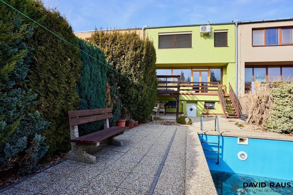 Nabízíme k prodeji prostorný, podsklepený rodinný dům 5+kk s garáží a bazénem, situovaný v klidné části Blučiny na ulici 9.května.