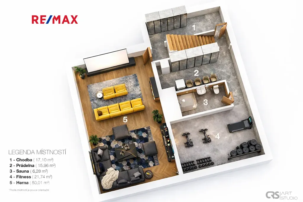Vybavení a benefity: posilovna, domácí kino, venkovní bazén