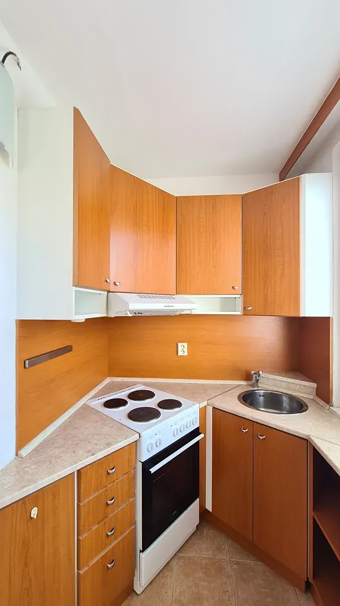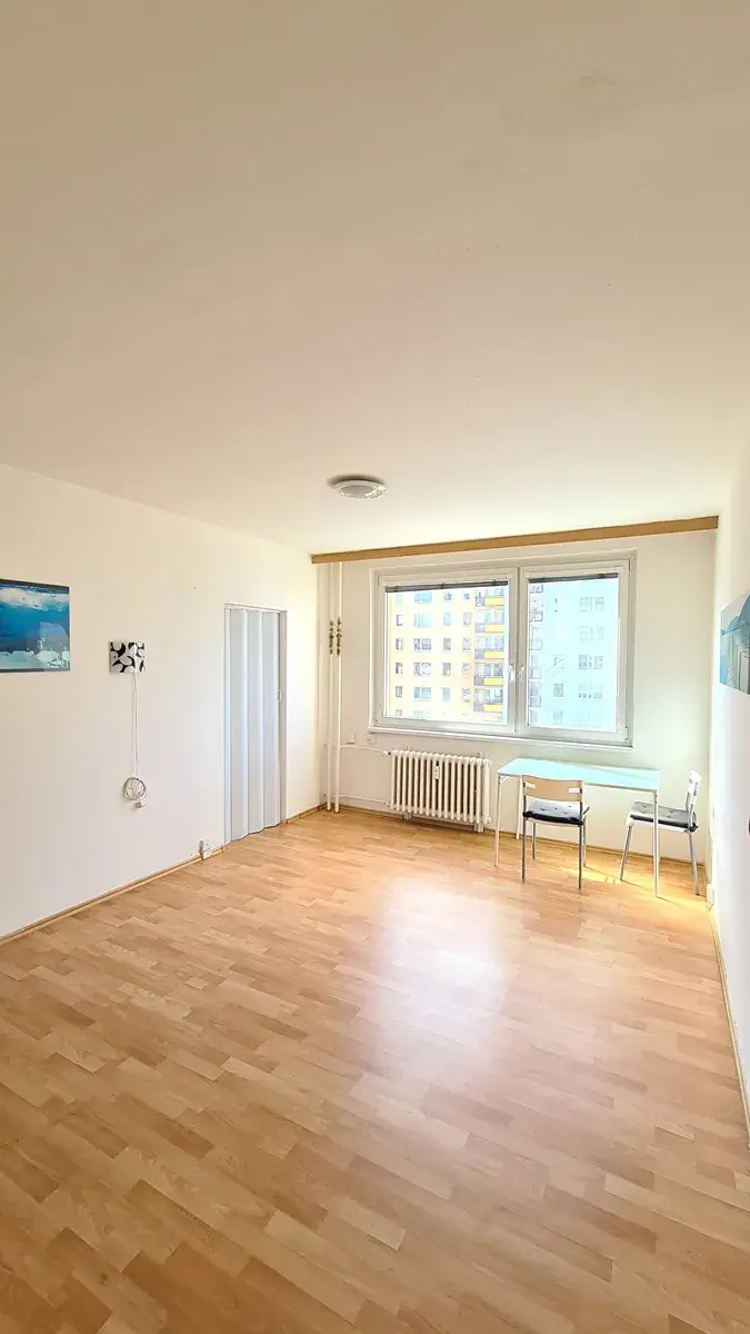 Hlavní místnost je orientována na jižní stranu a je z ní přístup do oddělené kuchyně. Byt se pronajímá částečně vybavený - tak jak je na fotografiích a připravený k pronájmu bude 01.03.2026. (prohlídky možné ihned).