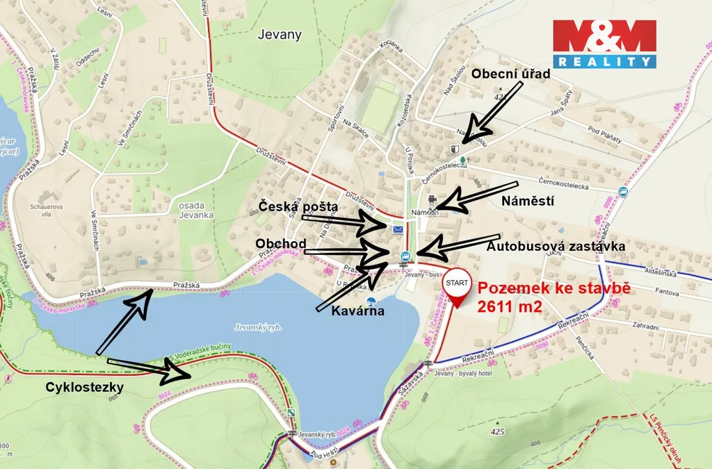 Prodej stavebního pozemku 2 611 m² v obci Jevany. Atraktivní a mimořádně klidná lokalita obklopená přírodou, vodními plochami a lesy, přesto s výbornou dostupností do Prahy. Zastavitelnost 22 % umožňuje výstavbu dvoupodlažního domu s velkorysou podlahovou plochou až 574 m² – ideální pro moderní rodinné sídlo, vilu, kombinaci bydlení a home office i reprezentativní rezidenční projekt. Elektřina je již přímo na pozemku, voda a kanalizace na hranici – připraveno k okamžitému zahájení stavby. Pozemek je rovinatý, oplocený, s přímým vjezdem z obecní komunikace. Okolí nabízí soukromí a klid, zároveň každodenní komfort: mateřská i základní škola, obchod, restaurace, lékař, pošta, sportovní areály i pravidelné spojení PID. Rybník, cyklostezky a běžecké trasy jsou v docházkové vzdálenosti. Lokalita s vysokou stabilitou hodnoty nemovitostí a velmi omezenou nabídkou stavebních pozemků. Cena 4.202 Kč/m². Výjimečná příležitost v prestižní obci. Kontaktujte nás pro prohlídku.