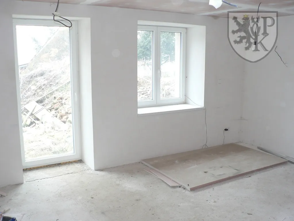 Přízemí - 2+1 (cca 25, 13 + 6 m2), koupelna, WC, kotelna, technická místnost, chodba, předsíň s dřevěnými schody do podkroví, vstupní zádveří, sklep. Podkroví – vyvedeny veškeré sítě, dle plánu 2 pokoje, koupelna s WC, šatna, 2 úložné prostory, chodba.