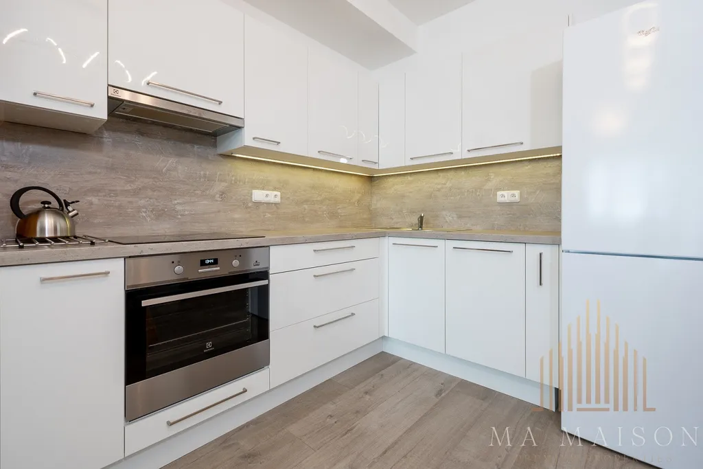 Byt se nachází v 5. nadzemním podlaží budovy a sestává: z velmi prostorné vstupní chodby s vestavěnou šatní skříní, koupelny se sprchovým koutem walk-in, toaletou s bidetovou sprškou, umyvadlem se zrcadlem a skříňkou, přípojkami na pračku a sušičku, dále z obývacího pokoje s kuchyňským koutem (plně vybaveno), z ložnice se šatní skříní. Kromě postele je byt kompletně vybaven: veškeré spotřebiče (myčka, trouba, varná deska, lednice, mrazák) včetně startovacího nádobí, jídelní stůl se židlemi, rozkládací pohovka s konferenčním stolkem, komoda pod TV. Interiérové žaluzie včetně dvouřadé garnýže, moderní osvětlení, světová orientaci na jih a východ, zasklení terasy.