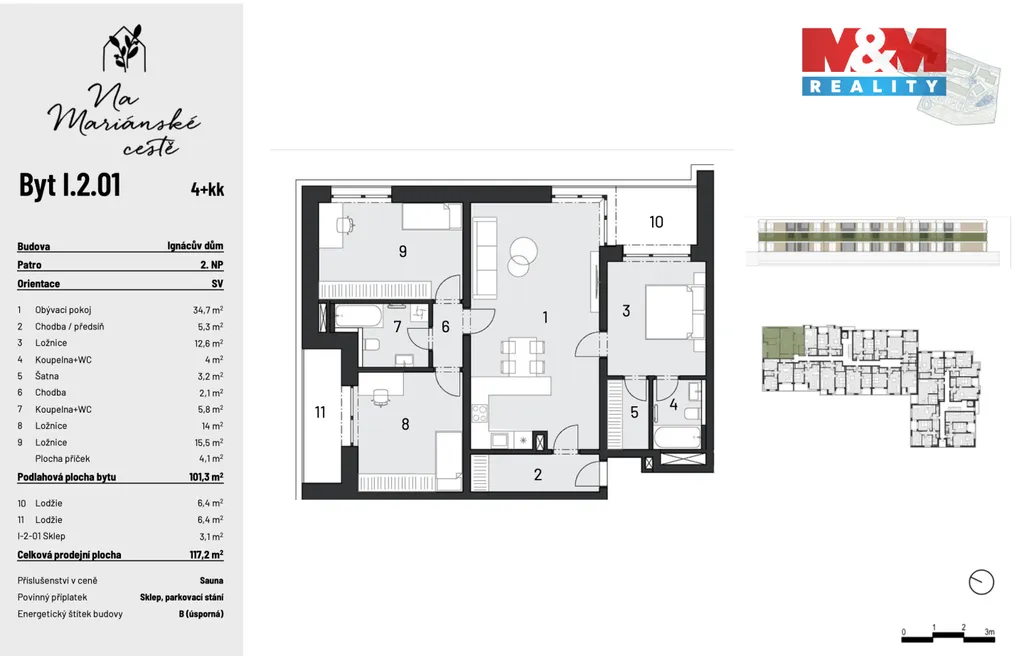 Máte jedinečnou šanci dostat k bytu 4+KK GARÁŽOVÉ STÁNÍ ZDARMA!! Nabízíme poslední byty ihned k nastěhování v nejžádanější Rezidenci Na Mariánské cestě inspirovaná skandinávským stylem, která získala ocenění Projekt roku! Ideální místo pro rodiny s dětmi, páry, jednotlivce i starší generaci, kteří si chtějí užívat klidné a harmonické prostředí. Pečlivě navržené byty poskytují maximální pohodlí, vzdušnost a funkčnost, zatímco okolí rezidence nabízí široké možnosti relaxace i aktivního trávení volného času. K dispozici je workoutové hřiště, komunitní zahrádka i sdílené ohniště, kde můžete trávit příjemné chvíle s rodinou a sousedy. Bezpečné a pohodlné parkování zajistí vnitřní parkovací stání. Rodiny ocení bezpečné prostory pro dětské hry, zatímco ti, kteří hledají klid a pohodu, najdou ideální zázemí pro odpočinek. Komunitní prostředí podporuje přátelská setkání, ať už u odpolední kávy, grilování nebo při zahradničení. Rezervujte si svůj vysněný byt!